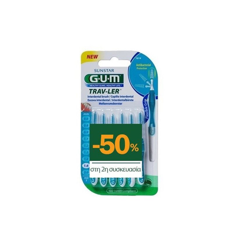 Gum 1614 Trav-ler Μεσοδόντια Βουρτσάκια Γαλάζια 1,6mm 6τμχ 1+1
