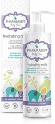 Pharmasept Baby Hydrating Milk 250ml. Ενυδατικό βρεφικό γαλάκτωμα με αλόη, πανθενόλη & χαμομήλι. Προσφέρει απαλότητα, προστασία & βαθιά ενυδάτωση στην ευαίσθητη επιδερμίδα του μωρού.