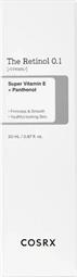 Η COSRX The Retinol 0.1 Cream περιέχει 0,1% ρετινόλη και καταπραϋντικά συστατικά, καθιστώντας την την τέλεια κρέμα για πρώτη φορά χρήστες ρετινόλης. Η ρετινόλη καταπολεμά αποτελεσματικά και προλαμβάνει τις ρυτίδες και τις λεπτές γραμμές. Η πανθενόλη και η αδενοσίνη ενισχύουν τον φραγμό του δέρματος ενώ η Super Vitamin E και διάφορα αντιοξειδωτικά ενισχύουν την αντιγηραντική δράση της κρέμας.