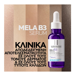Το MELA B3 serum της La Roche-Posay είναι ένας ορός εντατικής δράσης κατά των κηλίδων, με την δύναμη του Melasyl™ και 10% Νιασιναμίδη.