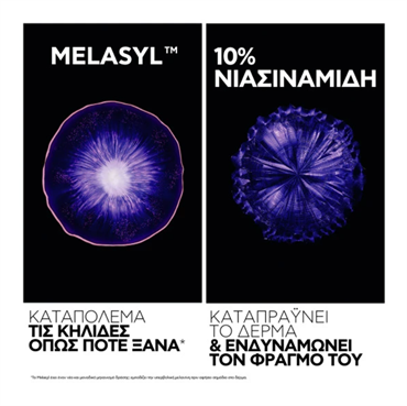 Melasyl™: Στοχεύει στην υπερπαραγωγή μελανίνης, διορθώνοντας τις ατέλειες στον τόνο.
