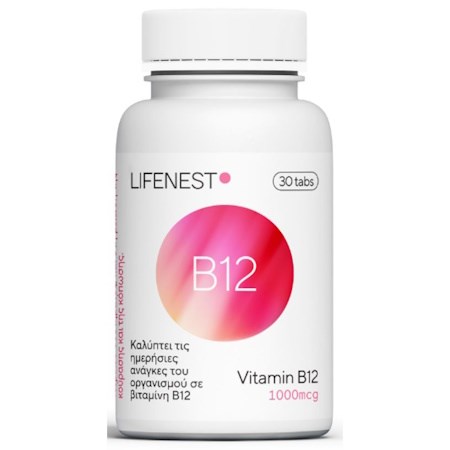 Lifenest Vitamin B12 1000mcg, 30 ταμπλέτες. Συμπλήρωμα διατροφής για ενίσχυση του νευρικού συστήματος, με υποστήριξη ενέργειας και φυσιολογικής λειτουργίας του οργανισμού.