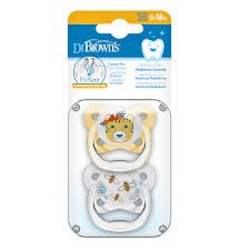 Dr Brown's Πιπίλα Ορθοδοντική Prevent 6-18m Κίτρινο - Διάφανο, 2τεμ