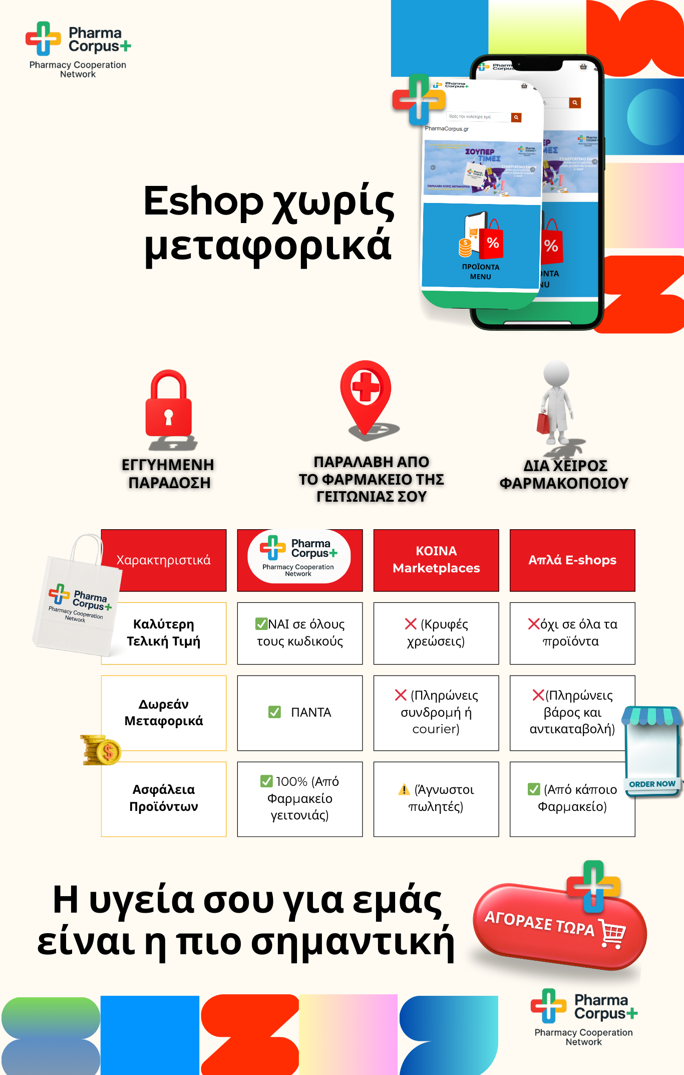 φαρμακευτική υπευθυνότητα και επιστημονική τεκμηρίωση διότι παραλαμβάνεις τα προϊόντα σου ασφαλή από το χώρο του φαρμακείου της επιλογής σου, από τα χέρια του φαρμακοποιού με την χρήσιμη συμβουλή του και χωρίς έξοδα αποστολής και αντικαταβολής. Πληρώνεις στο ταμείο.
