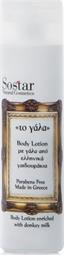 Το Sostar “Το Γάλα” Γαλάκτωμα Σώματος είναι εμπλουτισμένο με βιολογικό γάλα γαϊδούρας, πλούσιο σε πρωτεΐνες, βιταμίνες A, B, C, E, αλαντοΐνη και πανθενόλη, συστατικά που συμβάλλουν στην ενίσχυση της ελαστικότητας και στη βελτίωση της υφής του δέρματος. Η ελαφριά και απορροφήσιμη υφή του χαρίζει άμεση ενυδάτωση, χωρίς να αφήνει ίχνος λιπαρότητας, αφήνοντας το δέρμα απαλό, λείο και διακριτικά αρωματισμένο.