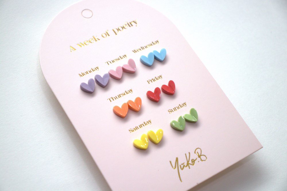 YUKO.B: Καρτέλα με 7 ζευγάρια σκουλαρίκια - A Week of Poetry Hearts