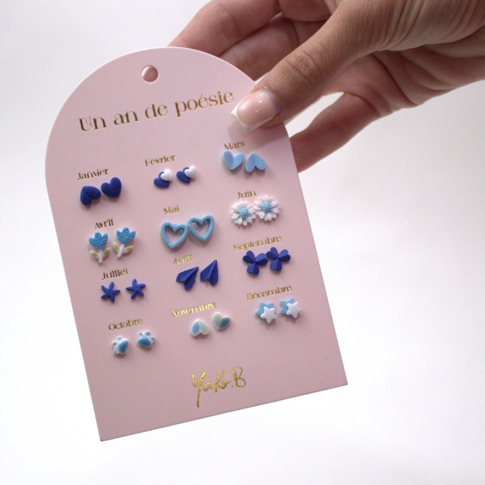 YUKO.B: Καρτέλα με 12 ζευγάρια σκουλαρίκια - A Year of Blue Poetry