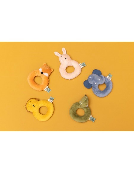 Ακόμη και τα πιο μικρά δάχτυλα μπορούν να πιάσουν αυτή τη χαριτωμένη, μικρή κουδουνίστρα. Στο εσωτερικό της περιλαμβάνει ένα είδος χαρτιού, το οποίο μόλις πιάσεις την κουδουνίστρα βγάζει έναν ήχο σαν να το τσαλακώνεις. Το μωρό σας θα διασκεδάσει για ώρες παίζοντας με αυτόν τον νέο μικρό του φίλο! Σύνθεση: 100% οργανικό βαμβάκι - ανακυκλωμένος πολυεστέρας - κουδουνίστρα Σύσταση ηλικίας: 3μ+ Διαστάσεις (ΜxΠxΥ): 11x5x17