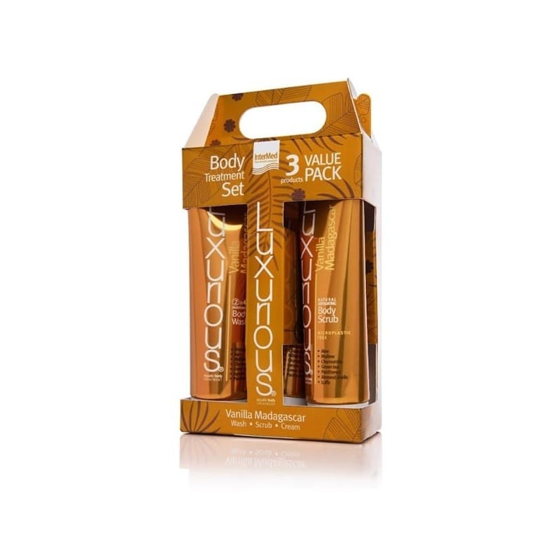 Το InterMed Luxurious Σετ Περιποίησης για Ενυδάτωση & Καθαρισμό Σώματος Vanilla Madagascar 3τμχ προσφέρει μια ολοκληρωμένη εμπειρία φροντίδας, συνδυάζοντας τρία πολυτελή προϊόντα που αφήνουν το δέρμα καθαρό, απαλό και υπέροχα αρωματισμένο. Η σειρά Vanilla Madagascar ξεχωρίζει για το ζεστό, αισθησιακό της άρωμα, που αγκαλιάζει το δέρμα και δημιουργεί μια αίσθηση χαλάρωσης και ευεξίας.