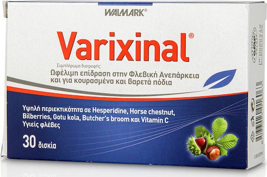 Το Varixinal 30tabs είναι ένα εξειδικευμένο συμπλήρωμα διατροφής που συμβάλλει στη φυσιολογική λειτουργία του φλεβικού συστήματος και στην ανακούφιση από τα ενοχλητικά συμπτώματα των κουρασμένων, διογκωμένων ή βαριών ποδιών. Η προηγμένη του φόρμουλα με φυσικά φυτικά εκχυλίσματα όπως ιπποκαστανιά, ρουσκο, γκιγκο μπιλόμπα και βιοφλαβονοειδή, ενισχύει την κυκλοφορία του αίματος και στηρίζει την υγεία των φλεβών και των τριχοειδών αγγείων.