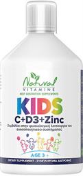 Το Natural Vitamins Kids Syrup C + D3 + Zinc 500ml είναι ένα παιδικό σιρόπι που συνδυάζει τρία από τα πιο σημαντικά θρεπτικά συστατικά για την άμυνα και την ανάπτυξη των παιδιών. Η βιταμίνη C ενισχύει την αντοχή του οργανισμού και προστατεύει τα κύτταρα από οξειδωτικό στρες, η βιταμίνη D3 συμβάλλει στην υγεία των οστών και του ανοσοποιητικού, ενώ ο ψευδάργυρος υποστηρίζει τη φυσιολογική λειτουργία του ανοσοποιητικού και την άμυνα απέναντι στις ιώσεις.