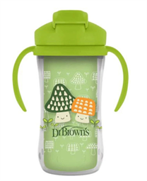Dr. Brown's Παιδικό Ποτηράκι με Λαβές και Καλαμάκι από Πλαστικό Πράσινο 300ml TC01203