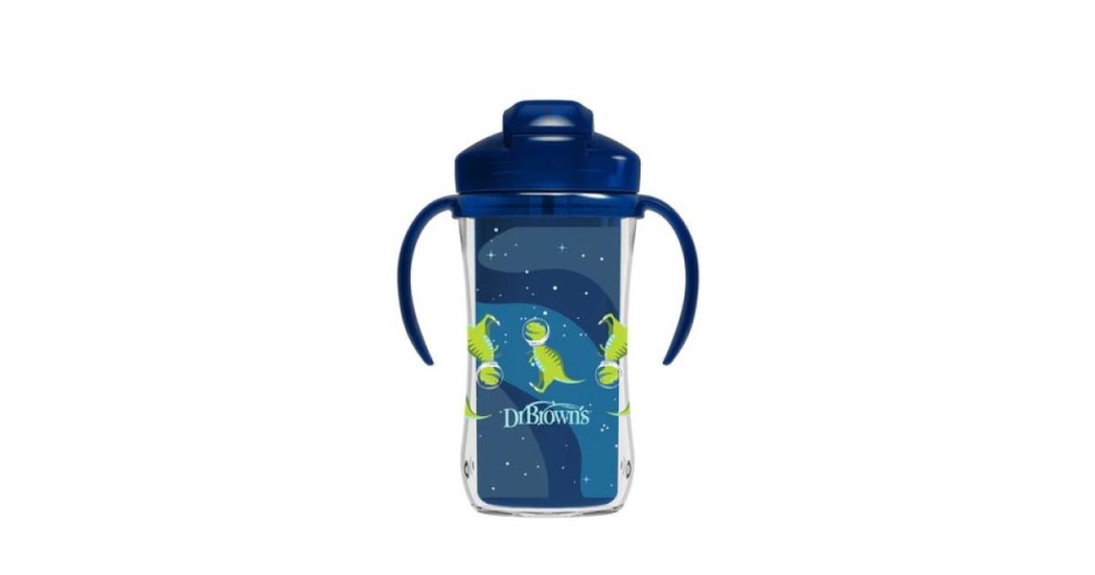 Ποτηράκι Dr. Brown’s 300ml με λαβές & καλαμάκι, σχέδιο Δεινόσαυρος. Αντιδιαρροϊκό, BPA free, ιδανικό για 12m+. Βοηθά στη μετάβαση από μπιμπερό σε ποτήρι.